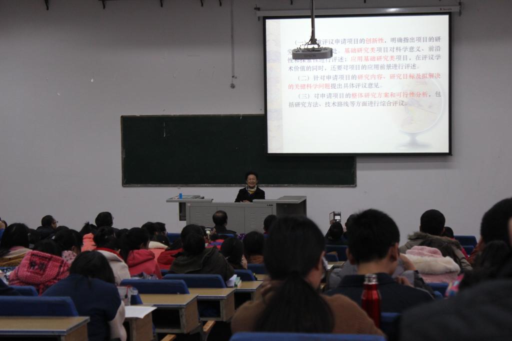 殷秀琴教授介绍了资助的主要项目及强度、评审要点、综合评价等级标准等,重点讲解了撰写国家自然基金项目申请书的主要步骤,包括:选题需要注意的问题、研究内容的层次性、拟解决关键问题的明确性与合理性等。强调了在撰写申请书时需要突出项目的特色与创新之处,提出不同的学术思想作为研究特色,并对预期进展提出基本设想,最后要按照《自然基金经费管理办法》要求,填写各项经费,准确填写备注内容,全面的阐述了申请国家自然科学基金,撰写申请书需要注意的细节问题。