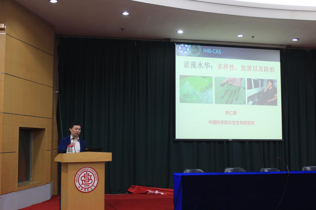 我国是世界上蓝藻水华发生最为严重、分布最广泛的国家之一。近年来,蓝藻水华一直备受社会各级管理部门的高度重视,更引起藻类学家和生态学家的密切关注,并开展大量的研究,取得可喜的理论成果。李仁辉研究员首先介绍了蓝藻水华的主要危害,蓝藻通过产生毒素、死亡分解时使水体缺氧和破坏正常的食物网威胁到饮用水安全,公众健康和景观,将造成严重的经济损失和社会问题。目前湖泊富营养化和蓝藻水华是全世界共同面临的重大环境问题之一。报告从蓝藻水华发生机制、蓝藻物种多样性和关键物种、藻毒素多样性及其危害、关键环境影响因素、水华监测和防控措施以及未来研究方向进行了系统全面的介绍。李仁辉研究员还从人类干扰和蓝藻水华的角度分析了北方淡水河流存在的主要环境问题,对将来有可能开展的工作与部分教师进行了积极地探讨。