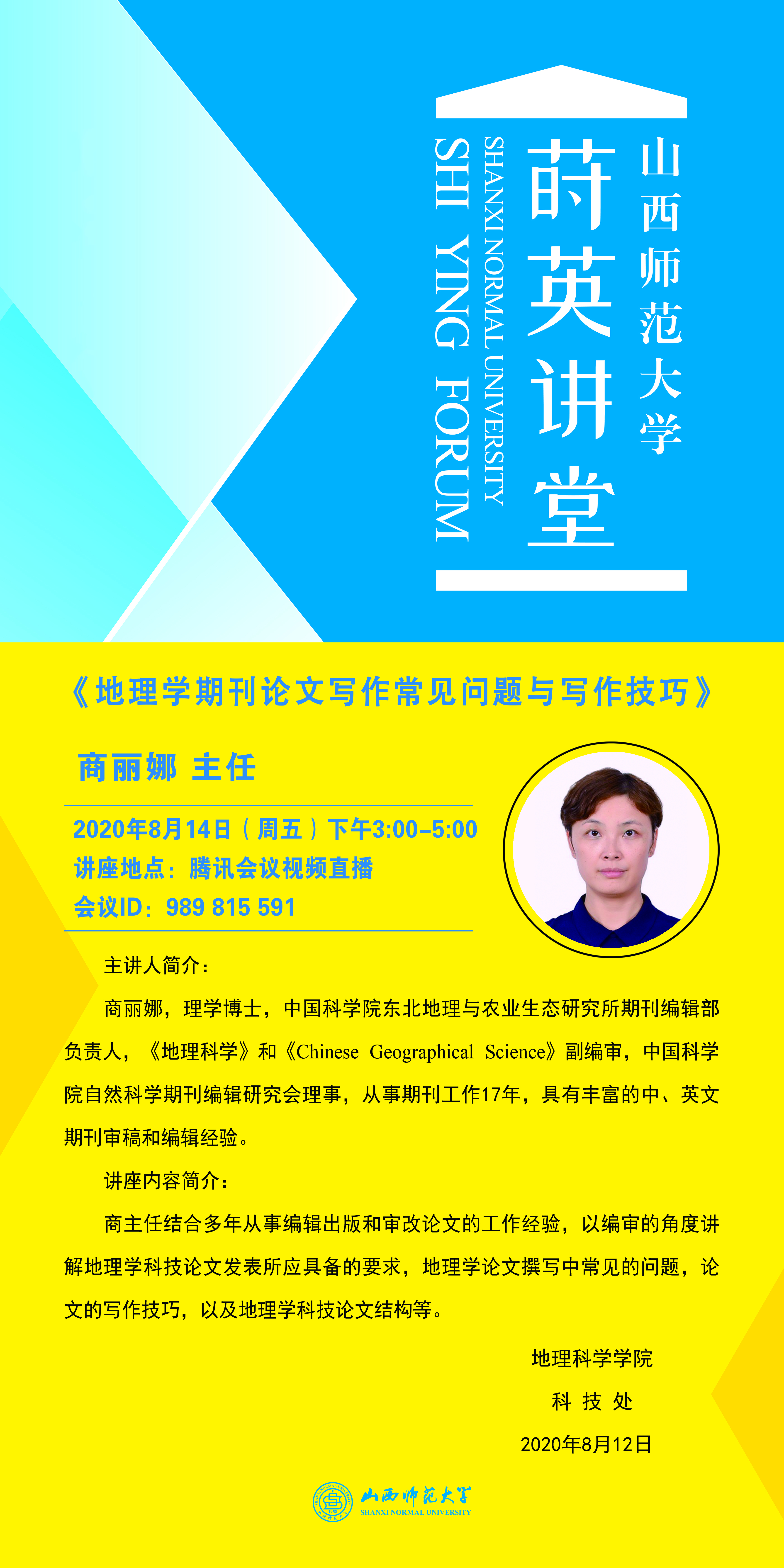 讲座题目:地理学期刊论文写作常见问题与写作技巧