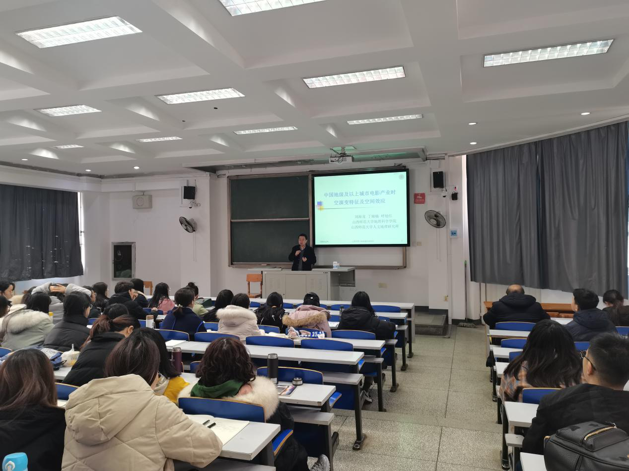 刘海龙老师作了《中国地级及以上城市电影产业时空演变特征及空间效应》的学术报告。刘老师首先以诙谐幽默的语言,对研究题目的灵感来源进行简要阐释。接着,从研究意义、数据来源、研究方法、电影产业时空演变特征、空间效应及影响因素识别、讨论六方面进行详细讲解。刘老师表明,经济快速发展对文化产品的需求增加,电影产业成为国家推动文化传播和经济转型升级的重要手段,对电影产业时空演变的研究极其重要;其次,研究中运用了空间自相关分析、空间计量模型等方法,对电影产业评价数理特征、空间格局演变特征、空间关联特征进行图表分析,从整体到局部分析表征。最后,经过拟合结果分析得出:中国地级以上城市电影产业发展存在显著的正向空间溢出效应的结论。