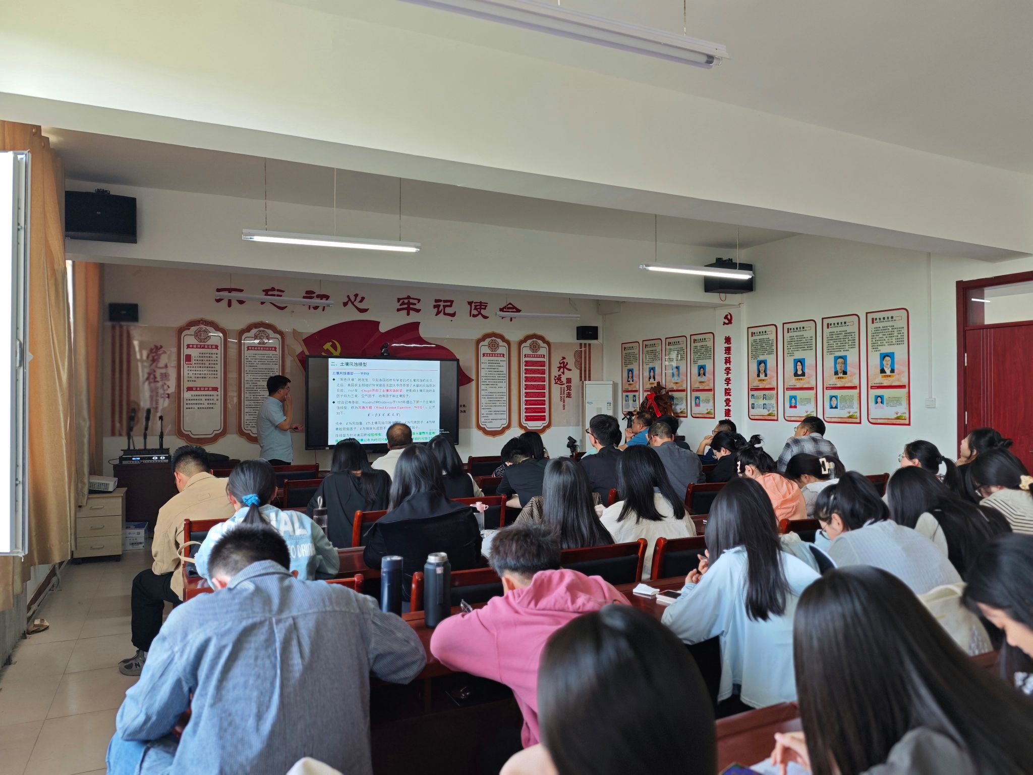 随后,李老师向我们展示了土壤风蚀模型的发展历程,包括WEQ和Pasak模型等,并指出了这些模型在应用中的局限性和改进方向。他强调,未来研究应更加关注气候因素和人类活动对土壤风蚀的贡献,为防治工作提供科学依据。最后,李老师向我们介绍了其研究团队的研究进展以及其主要生态试验站和实验室情况,拓宽了我们对相关学术内容的视野。