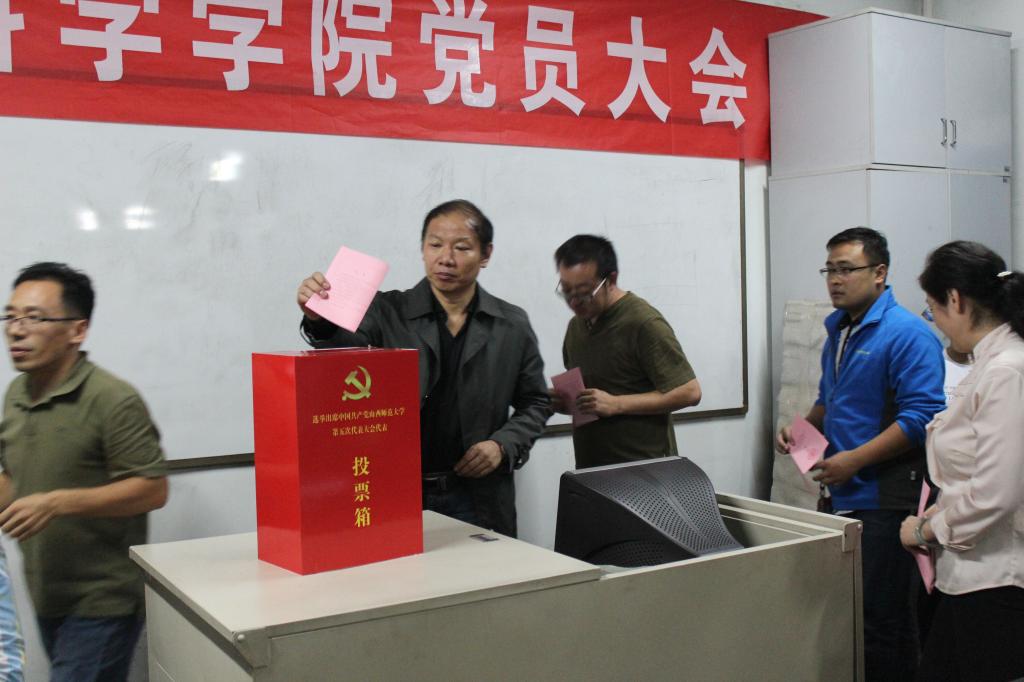 按照校党委关于做好我校第五次党代表大会代表选举工作的总体部署,经校党委批准,9月28日晚上7:30,必赢766net手机版在地质地貌实验室召开全体党员大会,选举产生出席我校第五次党代表大会的代表。大会由学院党委书记刘梅同志主持。