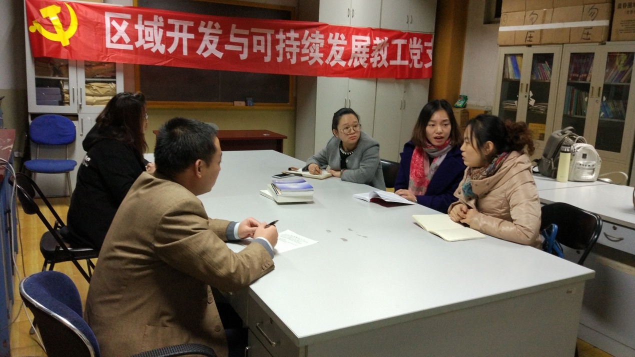 11月28日18:00,我院区域开发与可持续发展党支部在地概实验室开展了“十九大精神与大学教育改革”主题党日活动。本次活动由刘海龙博士主持,大家认真学习并热烈讨论了党的十九大报告中关于教育的篇章。