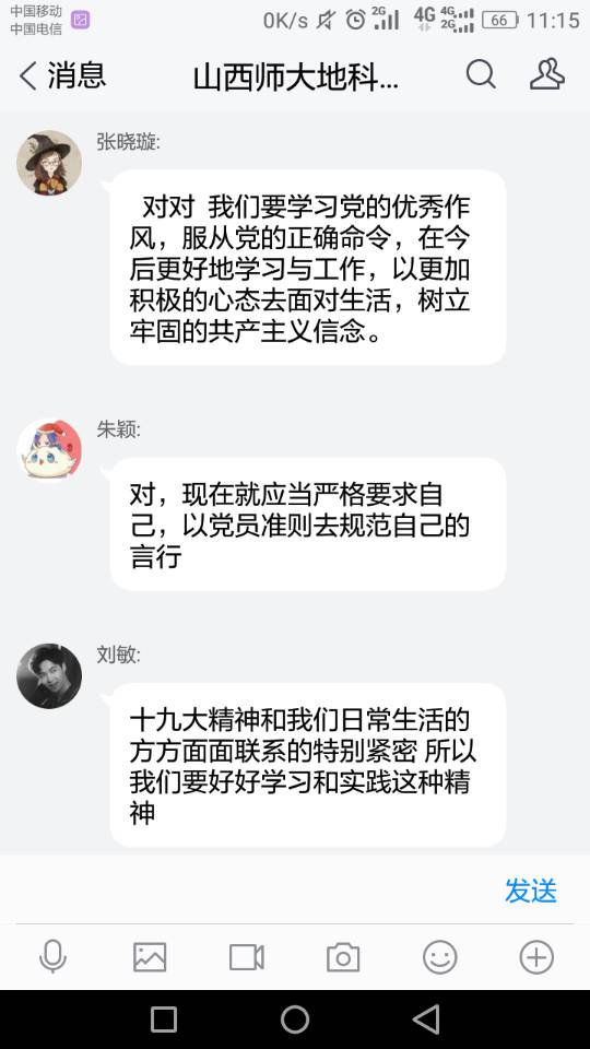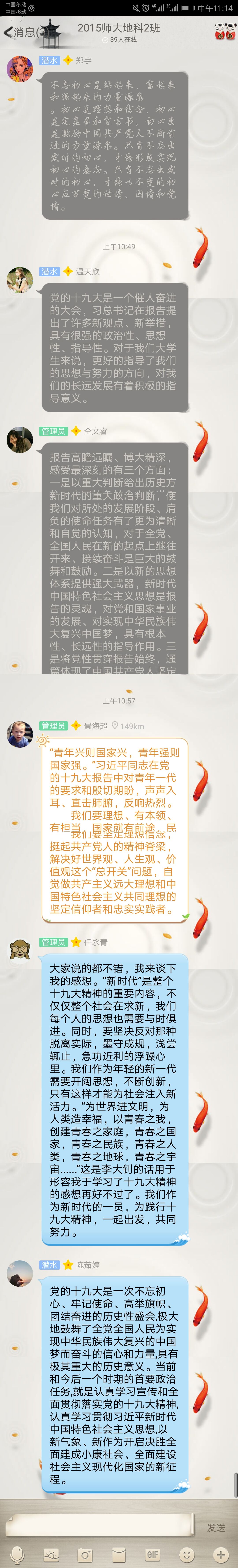 15级部分同学在外实习,支部采用了线上线下学习交流的方式,实现十九大精神在联系班级中全覆盖。