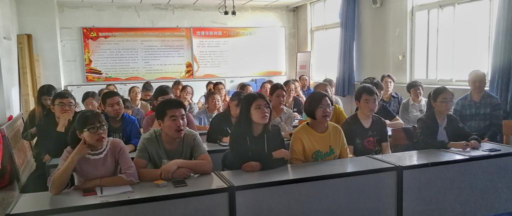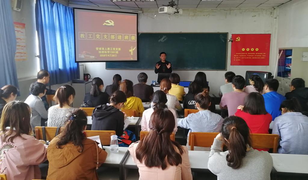 2018年4月26日10:30,管理育人教工党支部走进本科班级1501班、1502、1503宣讲十九大精神,为同学们上了一堂生动的党课。管理育人党支部书记张岩青老师主持本次会议。