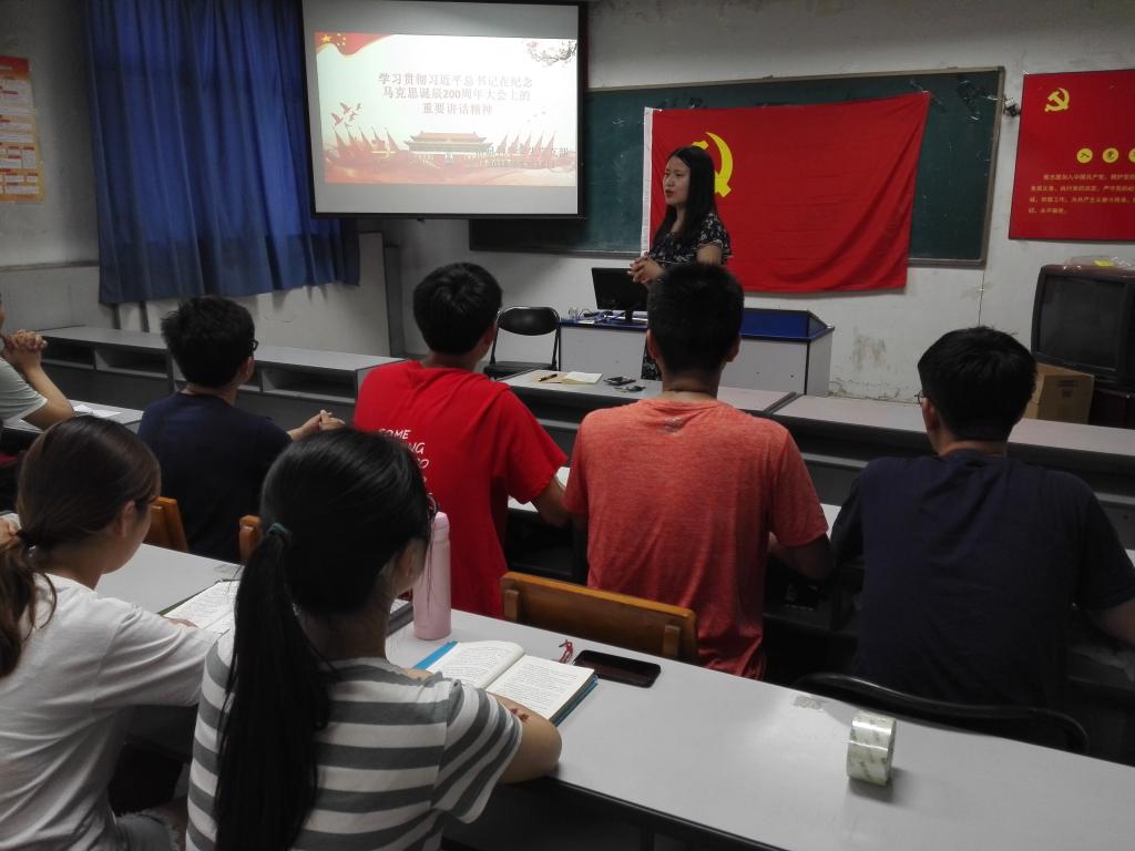 5月18日18:30,信息科学学生党支部在04618教室开展了学习习近平总书记在纪念马克思诞辰200周年大会上的讲话精神专题学习会,党支部书记王亚婷、支部全体党员以及积极分子代表参加了学习会。