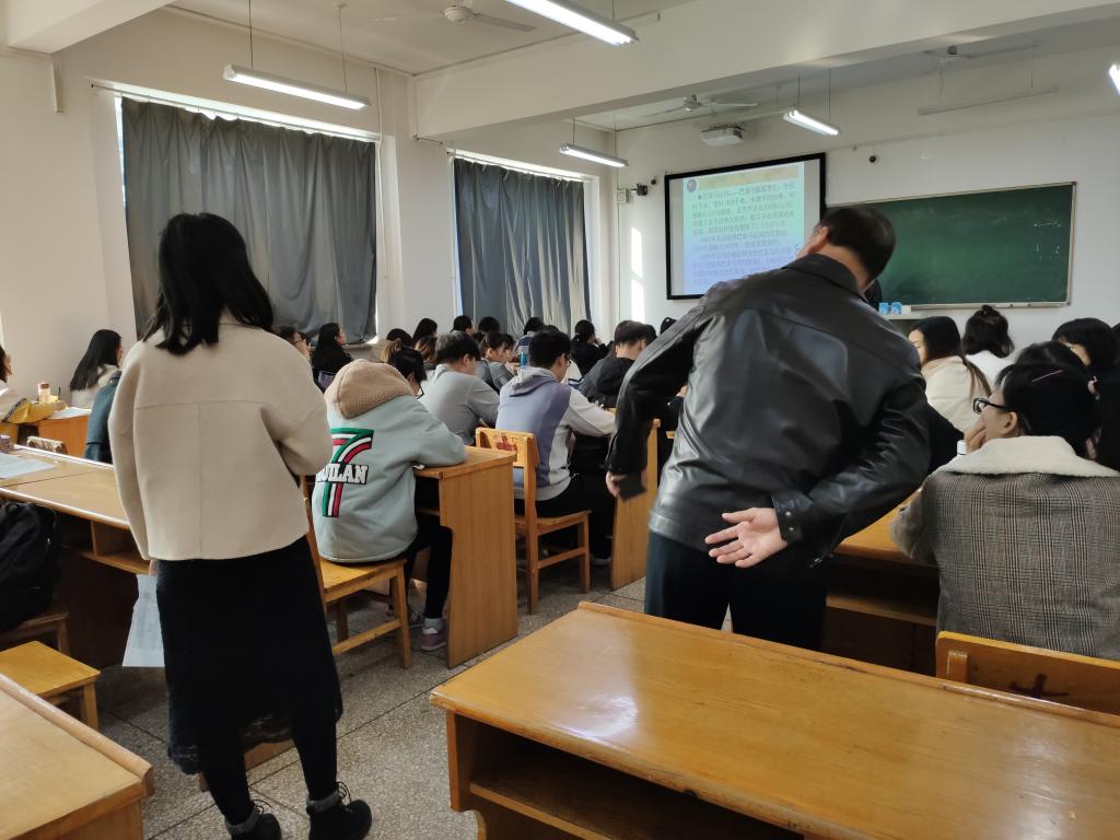 11月22日上午,管理育人党支部为落实“不忘初心、牢记使命”主题教育精神,落实三服务与学院近期工作重点,开展了“走进教室走进班级——查课堂促学风”主题党日活动,支部分两组分别走访各教学楼,覆盖本科四个年级课堂教学。范晓东同志、乔晓景同志、李雅同志为一组,康永和同志、张岩青同志、郭丽婷同志为一组参加了此次活动。