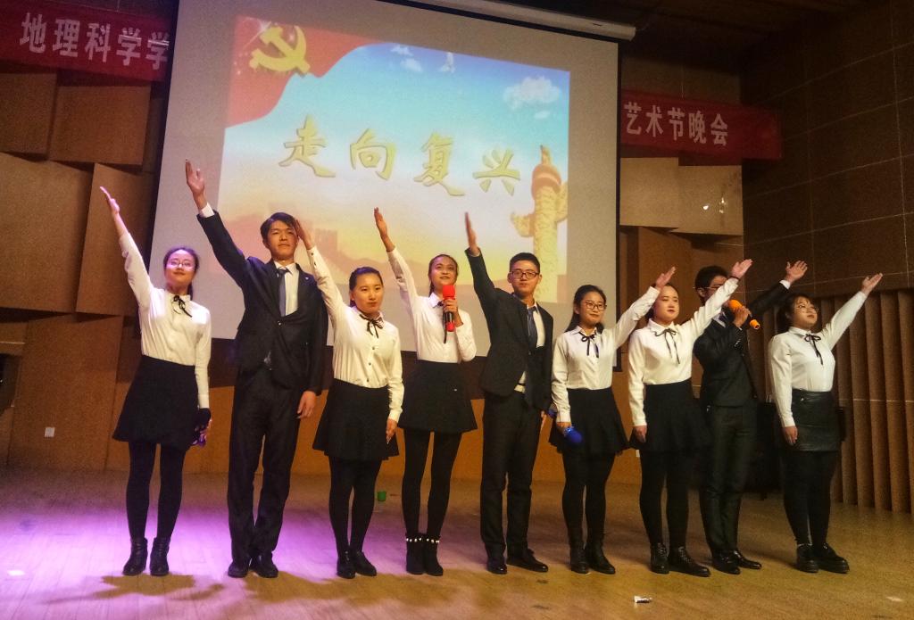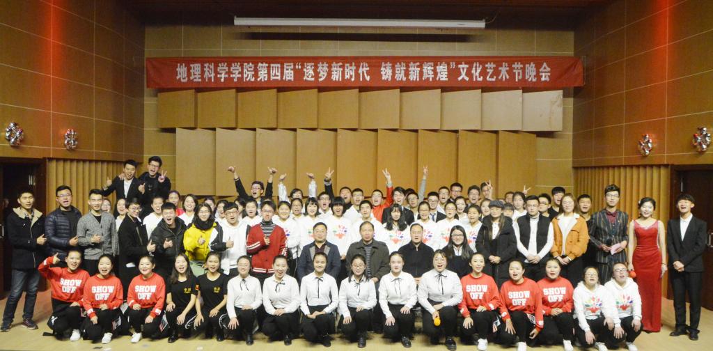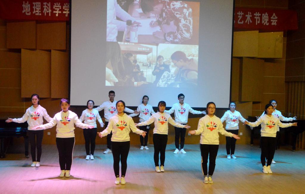 本次晚会围绕主题“逐梦新时代·铸就新辉煌”,以新时代、新青年、新征程为核心思想展开了三个篇章。伴随着动感旋律,八位活力女生以青春中略带性感的舞姿拉开了晚会的序幕。第一篇章“地理青年绽梦师大”以歌曲《我们好像在哪见过》《LoveYourself》唱响青春风采,以中国武术《双节棍》谱写爱国情怀,以说唱《You don’t evenknow》展现95后独特魅力。第二篇章“地理情怀时代心声”中,歌曲《祖国不会忘记》回顾了我院学子参加学校爱党爱国爱校合唱大赛的场景,一度调动起现场氛围;《青花瓷》将古筝与书法结合在一起,展示东方神韵,鼓舞大家要大力弘扬传统文化;《Dancing Time》《残酷月光》充分展现了青春活力。第三篇章“中华泱泱复兴荣光”积极响应十九大精神,共抒华夏情。手语舞《爱,因为在心中》、小品《赌王争霸》等节目引人入胜,意义非凡。整场晚会精彩不断,高潮迭起,赢得了台下阵阵掌声和欢呼声。诗歌朗诵《我们的中国梦》为本次晚会画上了圆满的句号,表达了地理学子不忘初心、牢记使命,为实现中华民族伟大复兴的中国梦不懈奋斗的决心和毅力!除了特色鲜明的三个篇章,晚会中间还穿插多次观众互动环节,并有暖心小礼品相送,深受大家的喜爱。