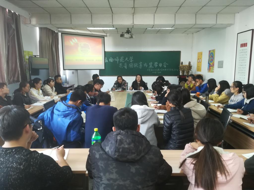 为深入学习贯彻习近平新时代中国特色社会主义思想和党的十九大精神,全面落实我校《关于推进新时代学校共青团工作改革的实施意见》精神,11月8日中午,我院团委在04618召开专题学习会。会议由院团委副书记王亚婷老师主持,全体学生干部以及各团支部书记、副书记参加了会议。