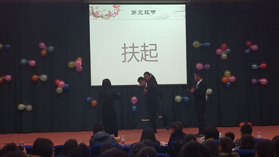 参加决赛的七个团队分别来自一、二年级不同的班级,在经过前期初赛的选拔后脱颖而出进入决赛。决赛共有三个环节:以“礼”相待、以“礼”相遇和有情有“礼” 。在以礼相待环节中,参赛队伍向观众们展示了规范、优雅的站姿、坐姿、蹲姿、走姿、鞠躬、握手等姿态和礼节,展现了当代大学生文明自信,友好尊重的精神风貌。在以礼相遇环节中 ,队员们就大屏幕上给出的文明用语和抗战词语进行一个比划,一个猜的游戏,精彩的配合、诙谐的演绎,引起了现场观众的阵阵掌声和笑声。在最后的有情有“礼”环节,参赛队伍进行了围绕文明礼仪和抗战情景为主题的情景剧表演,“让座”、“扶不扶”、“狼牙山五壮士”等主题或引人深思、或引人忍俊不禁,让现场的观众在精神上得到了洗礼。经过激烈的角逐,来自1406班的锋陆古韵队斩获冠军。