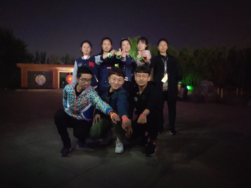 活动最后,同学们举起手中的荧光棒一起合影留念。之后由各组引导员带队回校,同学们全部安全回到了宿舍。