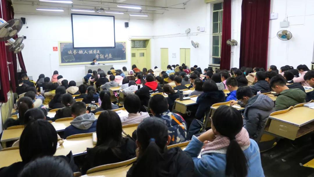 为深入学习贯彻党的十九大精神和团十八大精神,进一步引导青年学生积极培育和践行社会主义核心价值观,提高我院学生的理论修养和综合素质,坚定不移跟党走的信念。12月6日晚,我院团委在05201教室举办了“读书·做人·跟党走”的专题讲座。