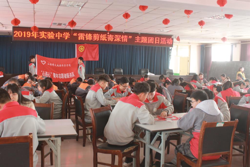 3月4日,第56个“学雷锋”纪念日前夕,我院“心连心”青年志愿者服务队及文学院学雷锋送温暖小组与长治市潞城实验中学联合开展"雷锋剪纸寄深情"主题团日活动,志愿者组织学生们创作“雷锋”主题刻纸作品,并讲述雷锋故事,让学生在感受剪纸传统艺术的同时,学习和传承雷锋精神。