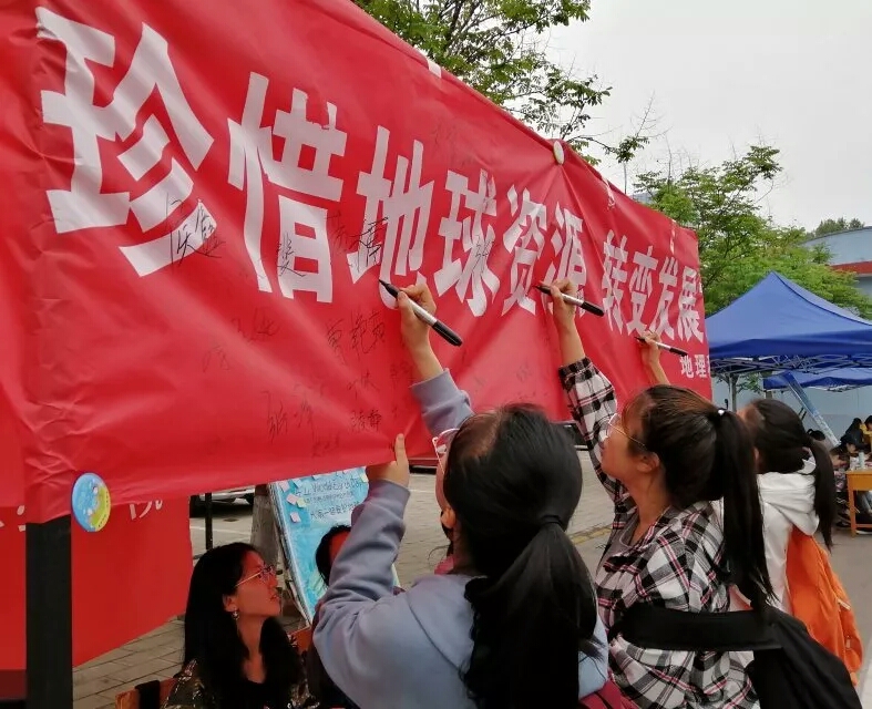 活动中,志愿者们通过分发关于世界地球日的宣传手册、环保纪念章及糖果,邀请过往的同学参与此次活动。随后,同学们在横幅上签上自己的名字,并在心愿便利贴上写下了对地球母亲最朴素简单的祝愿,希望我们赖以生存的地球家园青山常在、绿水长流。