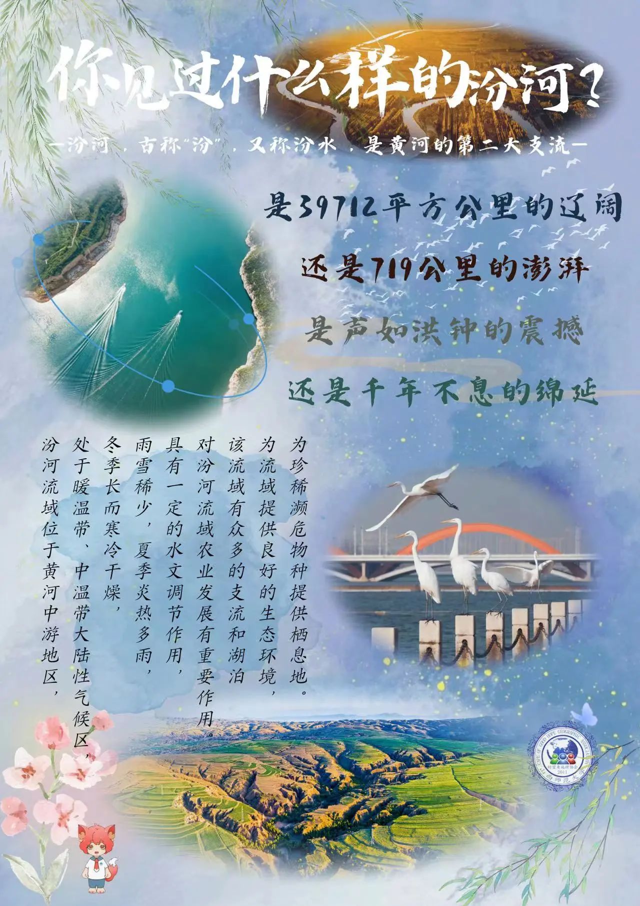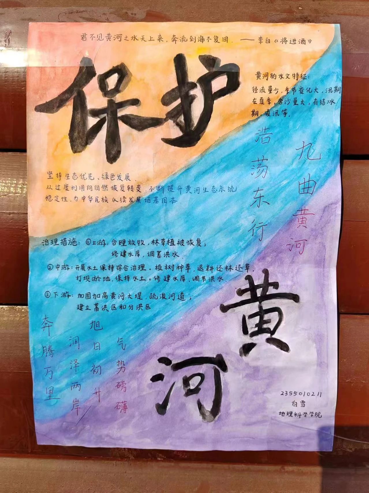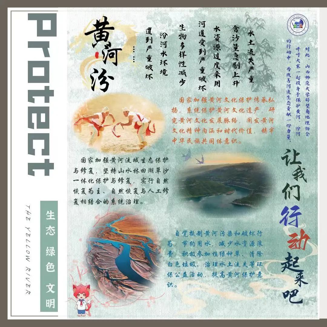 同学们运用自己深厚的地理底蕴,深入思考如何更好地保护黄河,并制作了保护黄河宣传海报;作品收集后,好望角地理协会志愿者将优秀作品进行宣传,让更多人了解汾河;每一张海报都个性鲜明,充分表达着同学们的想法与见解。