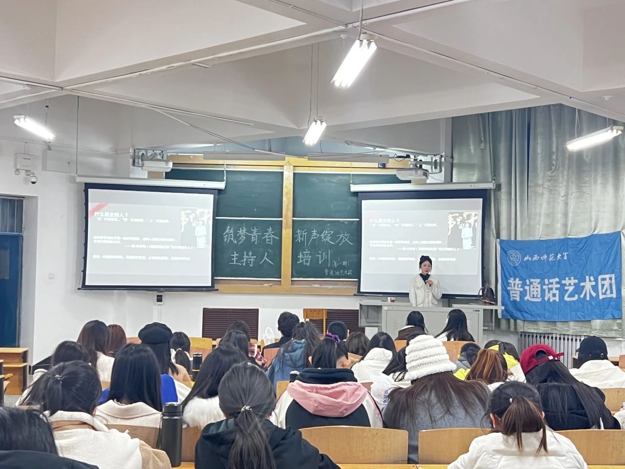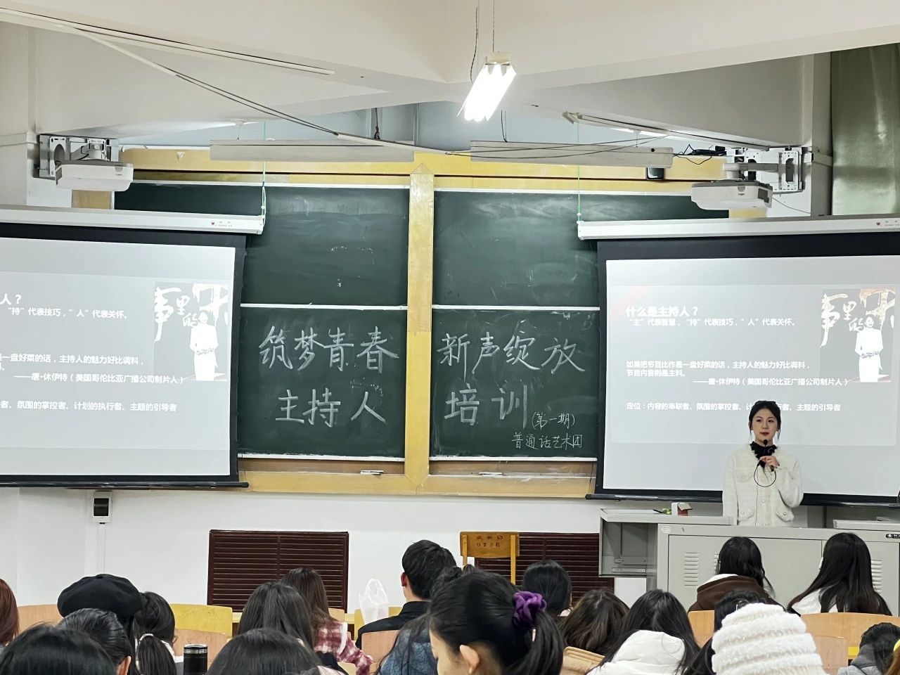 为了增强我校学生的自信心和个人素养成长,培养为一名优秀的主持人,2024年3月13日晚,我院在南区三号楼3410教室举办“筑梦青春,新声绽放”主持人培训第一期活动。
