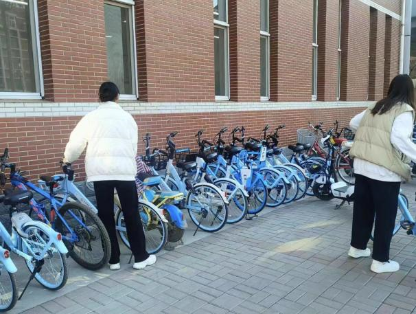 在共享单车摆放志愿活动中,志愿者们来到共享单车停放处,在负责人的带领下,开始了辛勤的劳动。随处可见的共享单车给同学们的生活带来了巨大的便利,但无序的停放会让美丽校园变得杂乱无章,也可能给同学们留下安全隐患。面对随意摆放的共享单车,志愿者们二话不说,干劲十足地把单车的摆放在规定位置,让“迷路”的单车回归,他们互相配合,不怕苦不怕累,将指定区域的单车摆放整齐。