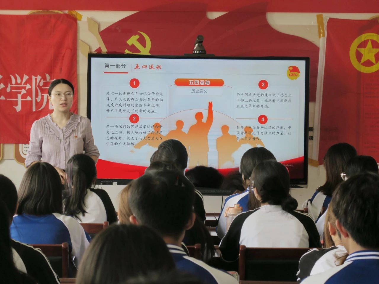 会议学习了习近平总书记五四青年节对全国广大青年寄语。“继承和发扬五四精神,坚定不移听党话、跟党走,争做有理想、敢担当、能吃苦、肯奋斗的新时代好青年”,蕴含了习近平总书记对新时代青年的殷切期望,激励团员青年不断拼搏进取,积极肩负起新时代新征程党赋予的使命任务。团委书记王亚婷老师强调团员青年要深刻领会习近平总书记五四青年节对全国广大青年的寄语精神。在新时代的征途上,团员青年应锤炼理想信念,践行勇毅担当,传承五四精神争做有理想、敢担当、能吃苦、肯奋斗的新时代好青年。