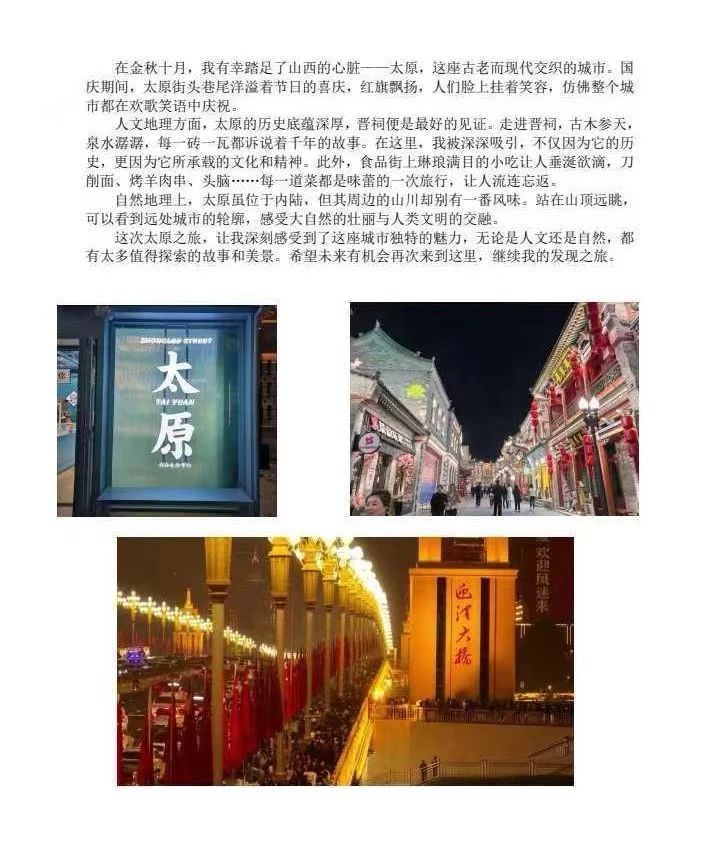 除了旅游分享,同学们还通过照片和文字,展现了自己与家人在国庆期间的温馨瞬间,以及家乡的美丽风光与独特文化。