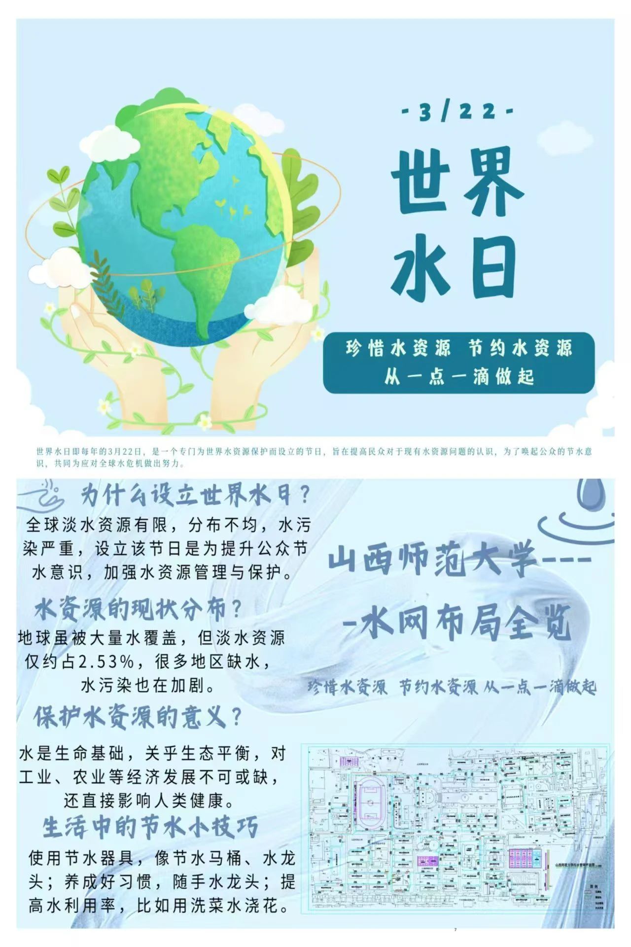 活动以线上线下结合的形式,面向全校学生开展节水知识宣传与实践。