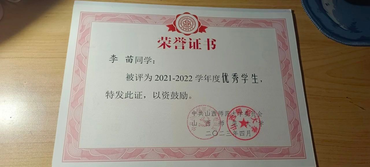 她尊敬师长,刻苦学习,努力务实,抓紧每一分每一秒,保持着一颗谦逊好学的心。入学两年来,她的学习成绩名列前茅,智育排名和综测排名始终保持全班前三,先后以512分通过了英语四级考试、525分通过了英语六级考试、计算机二级考试、普通话考试、教师资格证笔试等等。同时,她也积极参加各种学科竞赛,在第三届“外教社·词达人杯”全国大学生英语词汇能力大赛山西师范大学本科非英语专业组校赛二等奖。此外,她还积极参加体育类的竞赛,山西师范大学第三十一届春季大学生运动会女子组4*400米接力第一名。在社会实践方面,她积极参加“青春兴晋”返家乡社会实践活动、“感谢恩师”、“回校谢恩”活动、2022年爱心助学暑期三下乡实践活动、第十期爱心助学活动、文学院举办的“爱心助学进气田”活动。