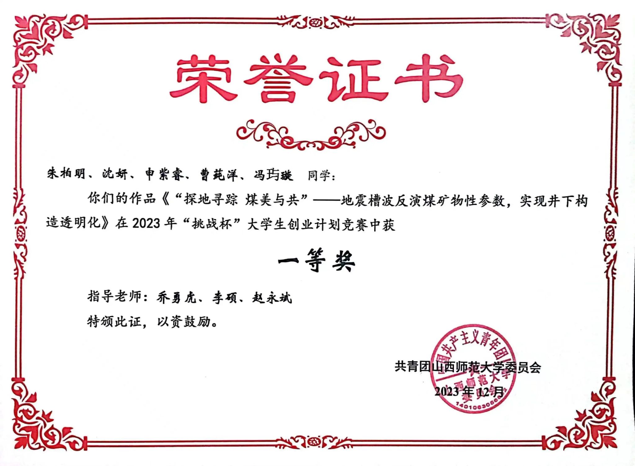 2023年挑战杯大学生创业计划竞赛一等奖;