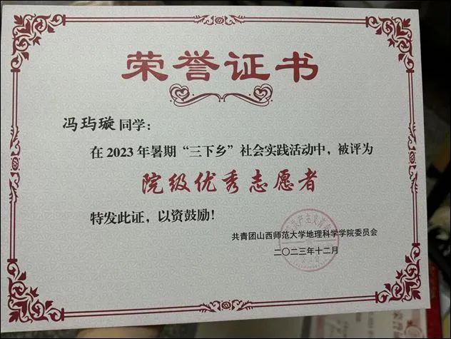 “三下乡”院级优秀志愿者;