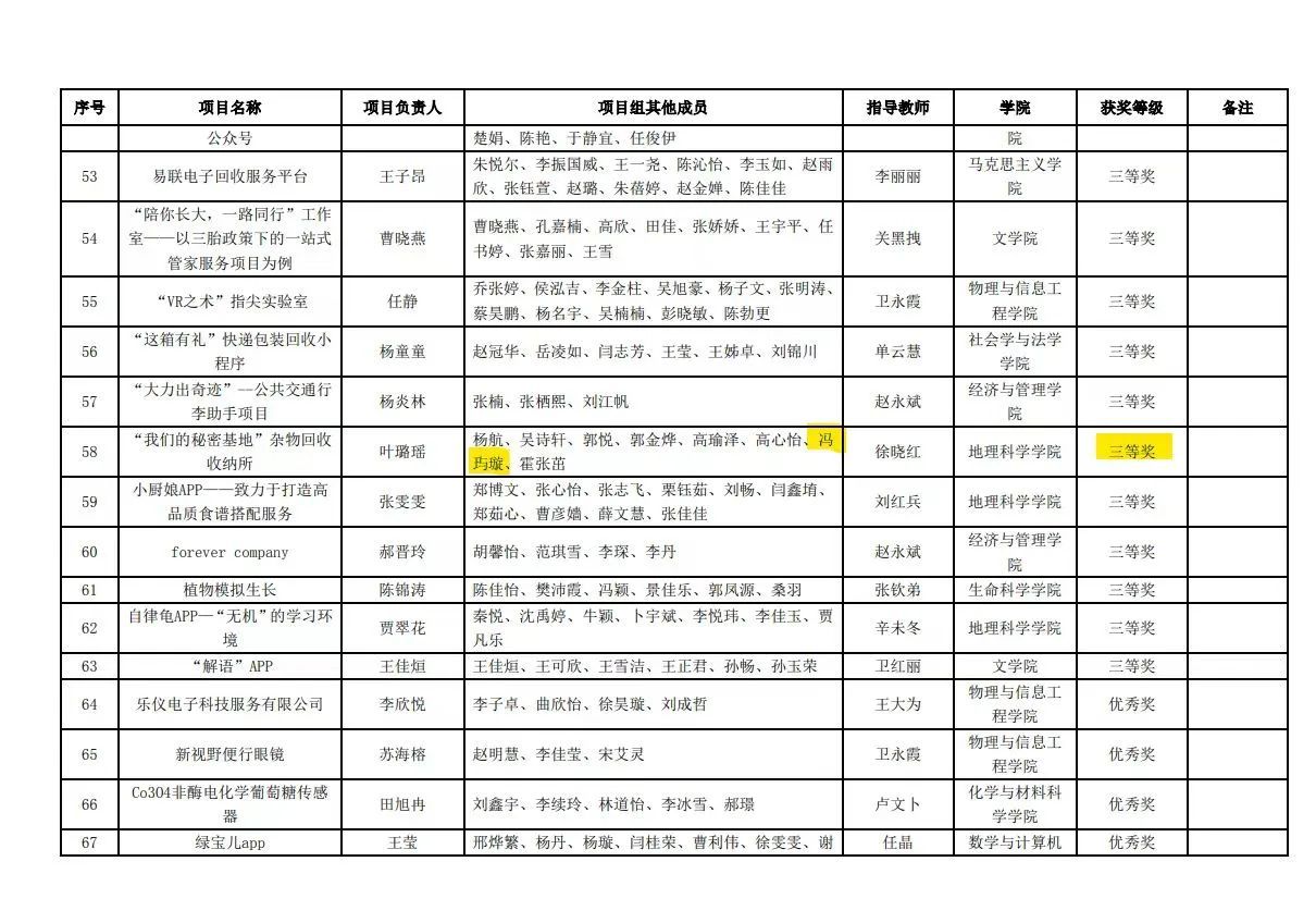 第八届“互联网+”大学生创新创业大赛获得校级三等奖;