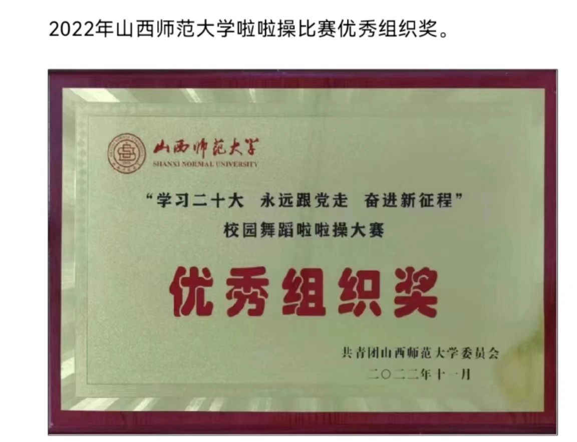 所带啦啦操队伍,获得校级优秀组织奖(教练员);