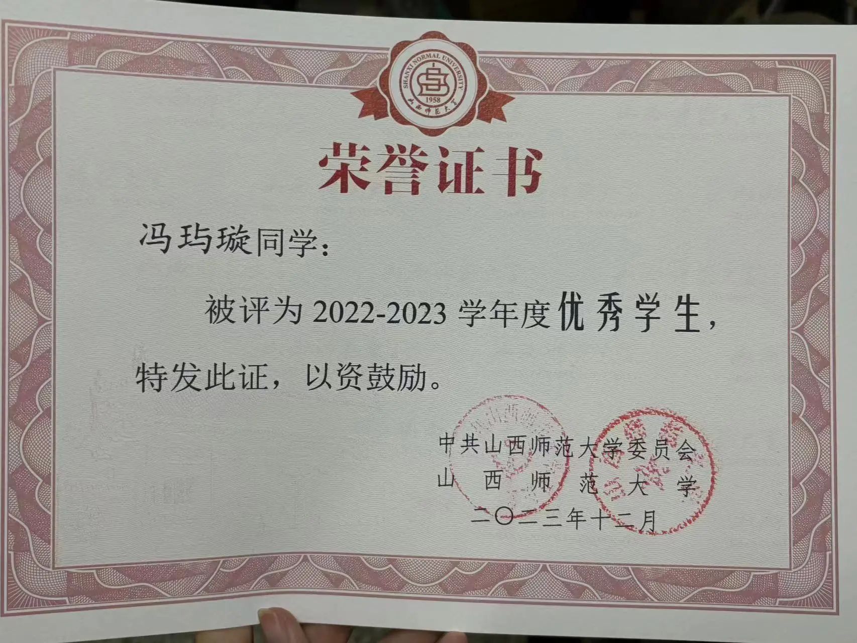 2022-2023校级优秀学生;