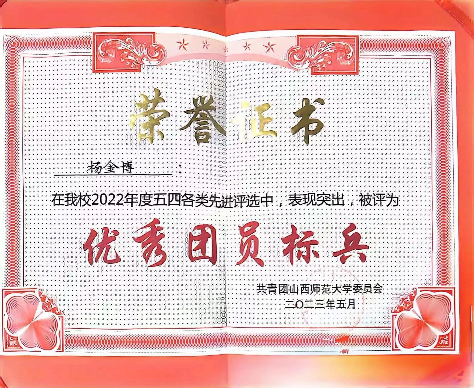 2023年05月,山西师范大学优秀团员标兵;