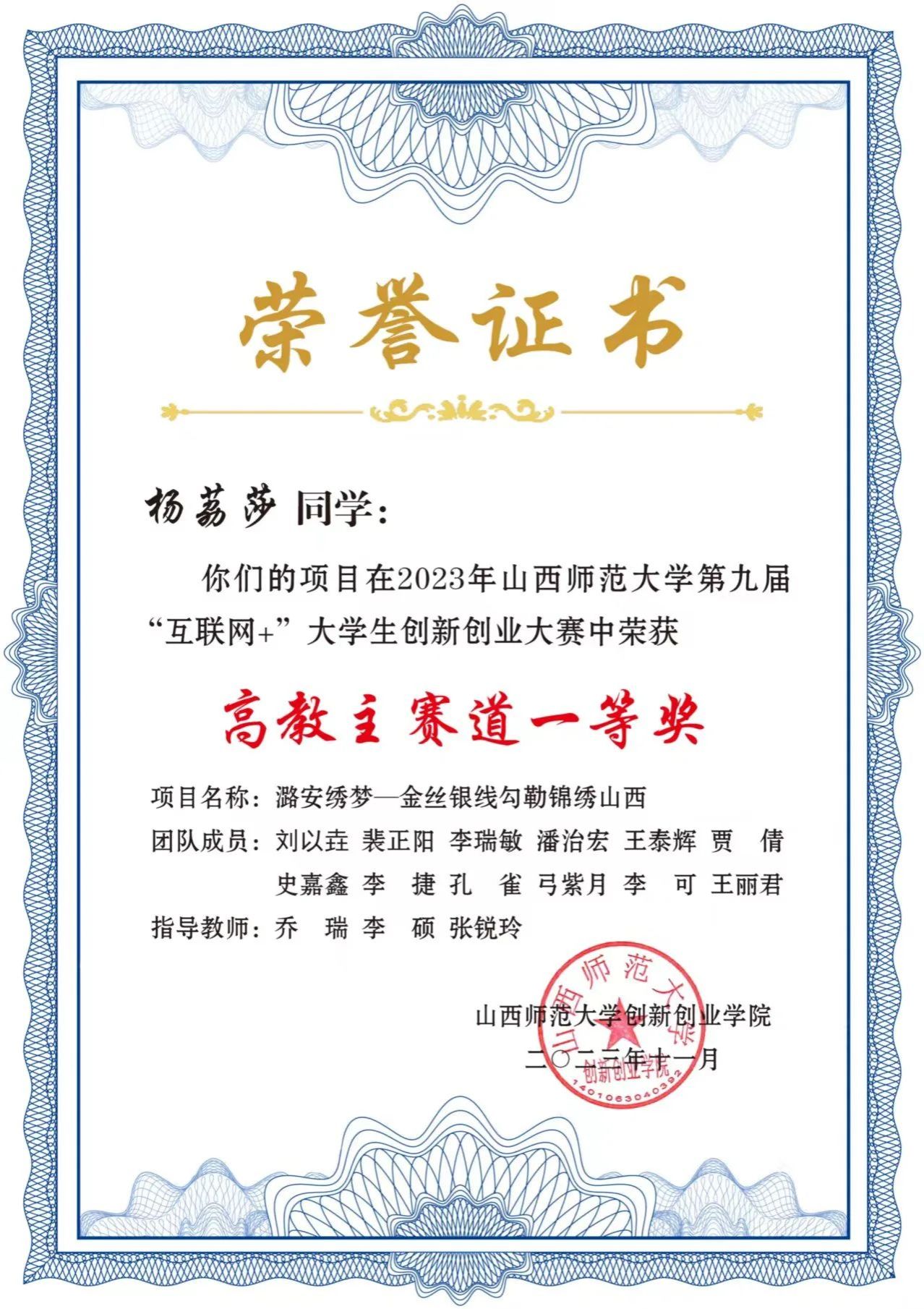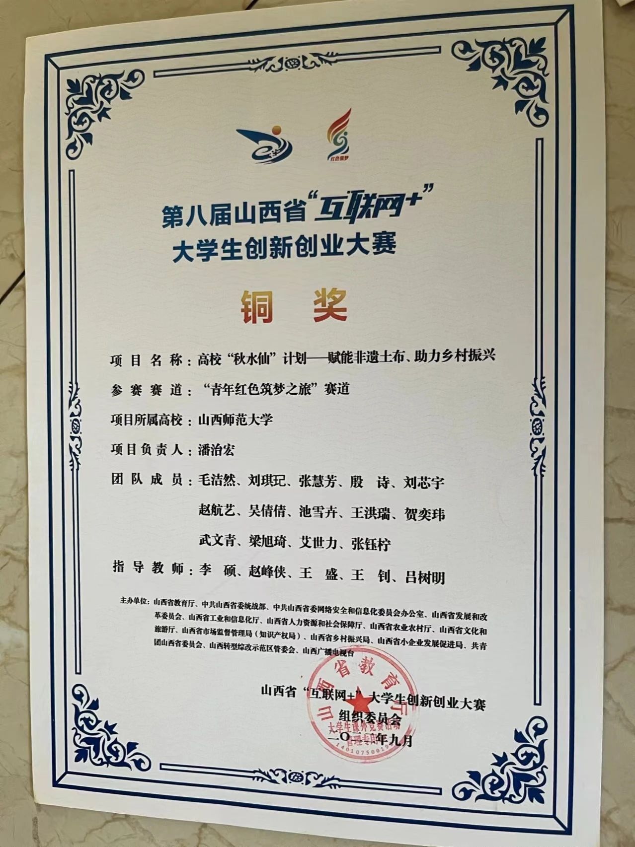 2023年8月获山西省“互联网+”创新创业大赛省级铜奖;