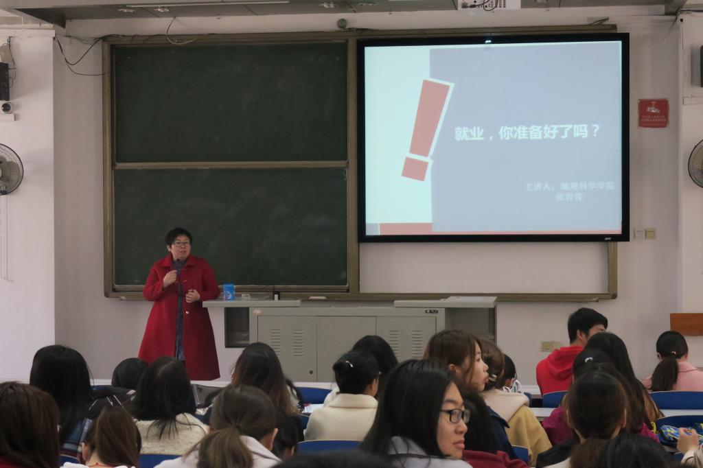 3月13日下午,我院在07101教室为大四学生举办以“就业,你准备好了吗?”为主题的就业指导讲座,讲座由我院办公室主任、专职辅导员张岩青主讲。