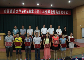 2013年7月4日上午十时,城市与环境科学科学学院2013届本科生毕业证书颁发仪式在科学会堂二层报告厅隆重举行。参加此次会议的领导有校党委副书记王心平、院党委书记刘梅、院长院学术指导委员会主任张永清、院党委副书记康永和、副院长张爱国、副院长王贵文、院学术指导委员会成员王国梁、院学术指导委员会成员地理科学系主任贾文毓。学院全体教师以及全体2013届毕业生参加了此次会议,会议由院党委书记刘梅主持。