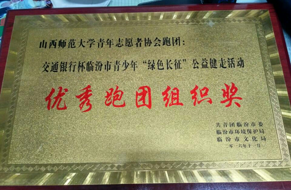 此后,我院青队定期开展了不同主题的荧光夜跑活动,用积极的态度响应了跑步捐树的号召,并成立了我校第一支志愿者跑团队伍。12月12日,共青团临汾市委等为青队跑团颁发了“优秀跑团组织奖”的奖牌,这是对志愿者们工作的肯定,更是对今后志愿活动的鼓励。