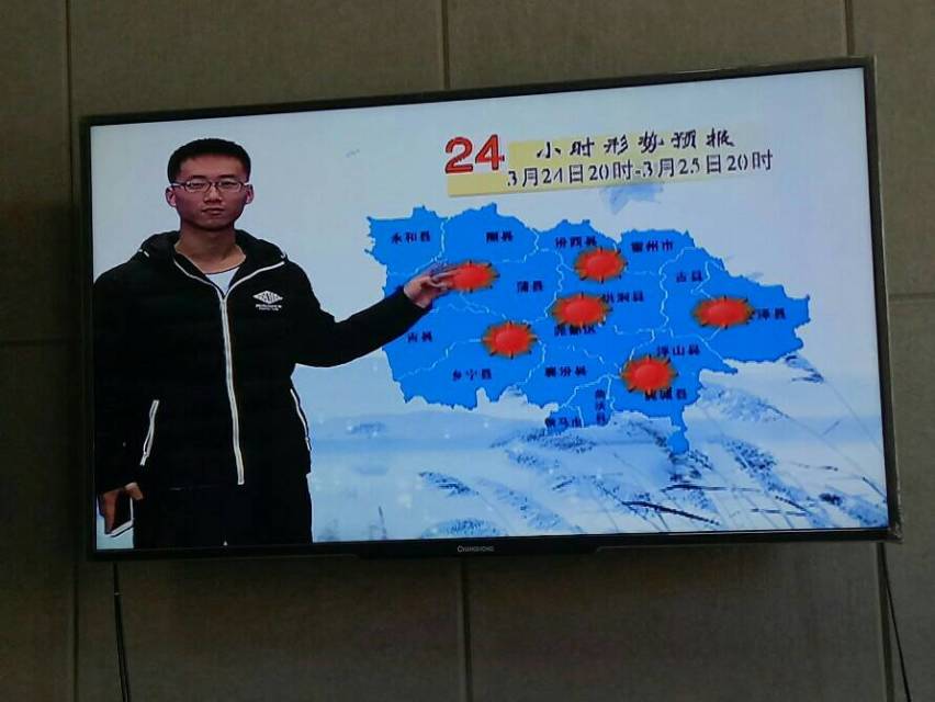 学生们在气象局工作人员的带领下先后参观了气象观测场和气象信息预警平台。参观过程中,气象局的工作人员耐心地向学生们讲解了气象观测设备的用途,天气现象的数据采集等基础知识。学生们实地参观了观测站各工作室以及百叶箱、雨量自动监测仪、日照测量仪等气象仪器。在气象预报平台,气象局的专家用生动的语言、详实的图片给同学们讲解了天气预报的制作流程和气象灾害的预警和防御知识。气象台的工作人员还向学生们详细讲解了地面气象要素观测、记录、采集、发报的全部过程,并就卫星云图、雷达图、高空、地面天气形势图在天气预报中的应用也作了细致的讲解。有的同学甚至还客串了“气象先生”的角色,过了一把天气预报播音员的瘾。