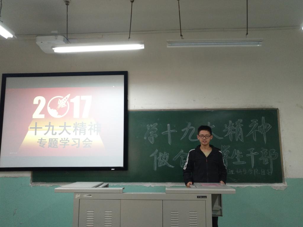 为学习宣传十九大精神,加强学院团委学生会思想建设,努力打造一支讲政治、有信念、有本领、有担当、有作为的学生干部队伍,2017年11月5日下午3点,我院团委学生会在04205教室举行了十九大精神专题学习会,院团委副书记王亚婷、学生团委副书记韩雨池、王念以及全体学生会干部共同进行了学习与交流。