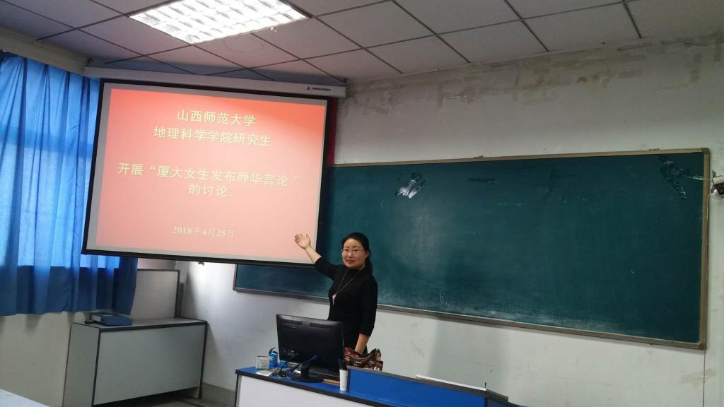2018年4月25日下午,我院组织研究生在04618教室开展了关于“厦大女生发布辱华言论”的讨论活动,活动由人文地理学辅导员王蕾老师主持。