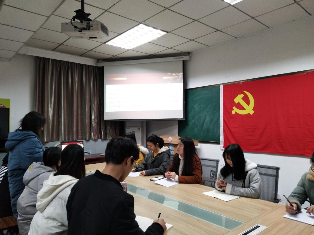 在12月20日的学习中,郭煜莲同志带领大家再次回顾了习近平总书记在全国教育大会上的讲话内容,大家深刻领会了习近平总书记关于教育的重要论述。随后,参会党员就“如何将‘六个下功夫’与实际行为相结合”展开讨论。正式党员雒琳和韩雨池说到:“如今,社会上出现了很多恶搞烈士、毁坏英雄形象、崇洋媚外等现象,我们身为一名光荣的学生党员,应该充分发挥自己的先锋模范作用,用实际行动感染身边的朋友加强爱国主义情怀。”会议最后,支部书记王亚婷带领大家共同学习了《人民日报:论学习贯彻习近平全国教育大会重要讲话》,她强调,每一位党员同志都应该深入学习领会、全面准确把握习近平总书记关于教育重要论述的科学内涵和精神实质,充分认识大会的重大意义并实践到生活中去。