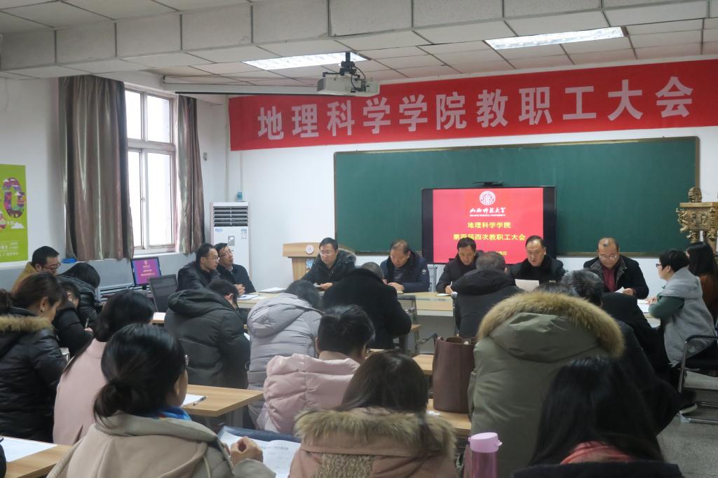 1月4日上午,必赢766net手机版召开了四届四次教职工大会,全体教职工参加了此次会议。