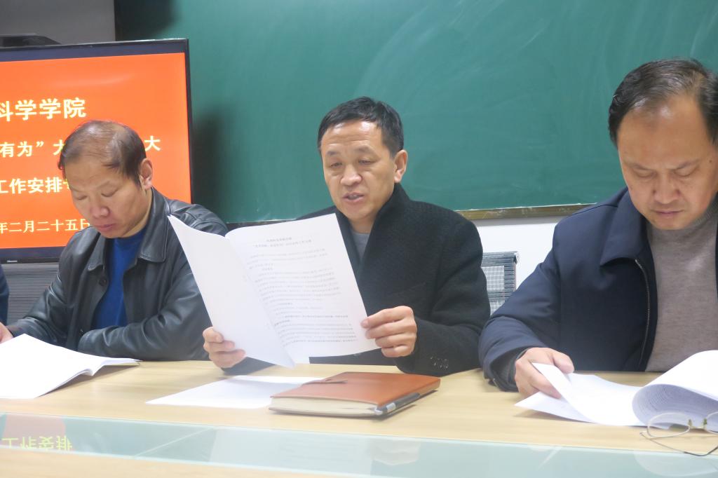 2月25日晚上,我院在04618会议室召开了“改革创新、奋发有为”大讨论动员部署大会。学院全体领导、教职工以及3名学生代表参加了会议。会议由院长张永清主持。