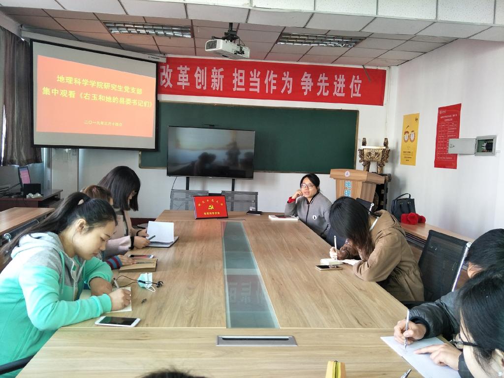 在2019年两会闭幕之际,我院研究生党支部于2019年3月14日进行了集体学习,学习内容包括集体观看《右玉和她的县委书记们》和开展“学科攻坚”,“助研助教”大讨论等。