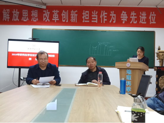 接着,张仲伍副院长传达了《山西师范大学硕士预答辩预审读文件》,他强调为保证我校研究生学位论文质量,学校决定开展学位论文预答辩与预审读工作。硕士学位论文初稿完成后,先由本人进行自检自查,再由指导教师进行初审。导师初审通过后,所在学院(所)须组织相同或相近专业的研究生指导教师(1-2名)对论文进行预审读。负责预审读的导师应针对论文中存在的问题提出修改意见,填写《山西师范大学硕士学位论文预审读简表》,并提交学位评定分委员会。研究生在完成修改工作后,形成送审稿,经学位评定分委员会组织人员审定通过后方可外审。