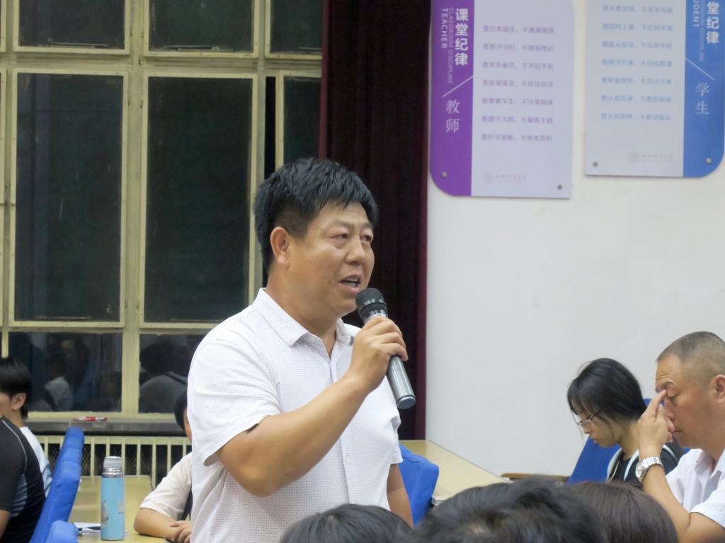 随后,院党委副书记康永和对学生的学习和生活环境做了说明,希望学生可以受到师大良好学习氛围的影响,深厚历史底蕴的熏陶,利用有限的硬件设施条件,实现自身价值。然后,简单介绍了学生基本守则,学校基本规章制度、考试制度,希望学生家长积极配合学院工作,共同管理好学生。