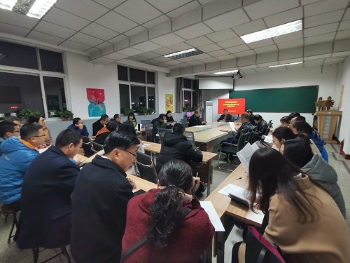 2019年11月26日19时,我院领导及全体教师在04618召开了2020年硕士研究生招生考试自命题培训会。会议由我院党委书记范晓东书记主持,首先范书记带领大家学习了自命题工作的系列文件,1.教育部办公厅《关于印发<全国硕士研究生招生考试自命题工作指导规范>的通知》(教学厅[2019]12号)中“组织管理”、“命题”、及“安全保密”内容;2.山西省招生考试管理中心《关于印发<山西省硕士研究生招生考试自命题工作指导意见(试行)>的通知》(晋招考研[2019]11号)中“组织管理”、“命题”、及“安全保密”内容;3.年度《全国硕士研究生招生工作管理规定》中“命题”章节。
