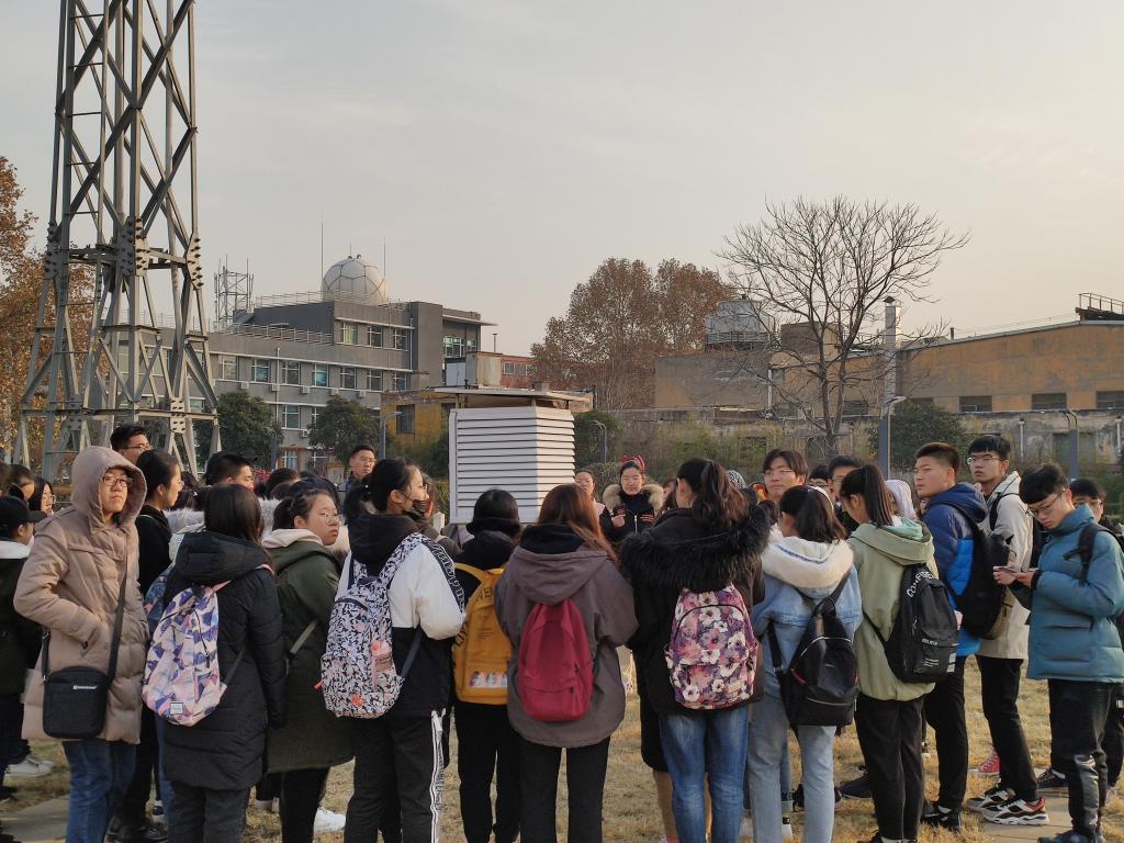 在气象观测场,通过工作人员的介绍,同学们认识了很多野外常用的气象观测仪器,补充了实验室仪器的种类,丰富了同学们对气象观测方式方法的认知。目前很多气象数据的观测已实现了自动化观测,在了解自动化观测的气象观测仪器的同时,让同学们体会到科技创新的优点和必要性。