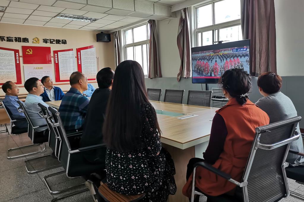 会前,与会人员一起观看了《烈士纪念日向人民英雄敬献花篮仪式》现场直播。