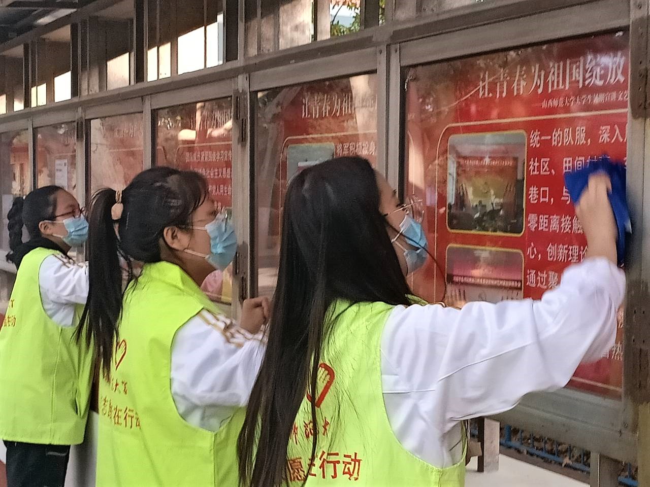 241名党员和积极分子对宿舍楼、教学区、莳英园等区域的宿舍楼门窗、自行车、果皮箱进行了清洁和整理。劳动过程中,同学们齐心协力,相互配合,充分发扬了不怕脏、不怕苦、不怕累的志愿服务精神,展现了昂扬向上的良好精神风貌。