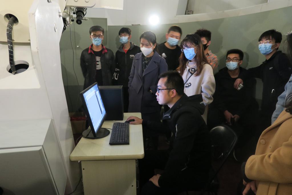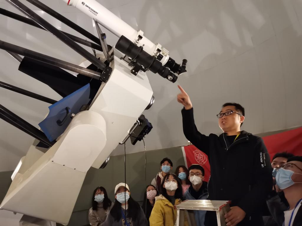 晚上7点,社团负责人带领同学们分批有序进入天文台进行了参观学习。好望角地理协会指导老师郭玲鹏老师详细讲解了相关知识,同学们对天文望远镜的构造、使用方法以及相关的天文知识有了初步了解。讲解结束后,同学们在老师的指导下对星空进行了观测,进一步感受了天文的魅力。