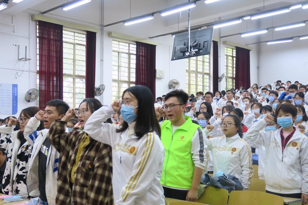 学生会主席团成员范耀蕾发言并宣读了本次青马培训工程各团支部负责人名单。引导员代表杜仁杰和学员代表谢婉莹发言并带领全体学员进行了宣誓。他们纷纷表示要用饱满的热情投入到青马工程的培训当中,并对自己提出了更高的要求。